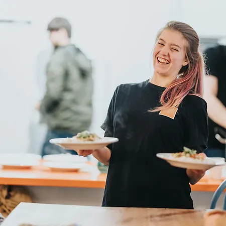 O hostel moderno oferece 35 quartos aos visitantes.